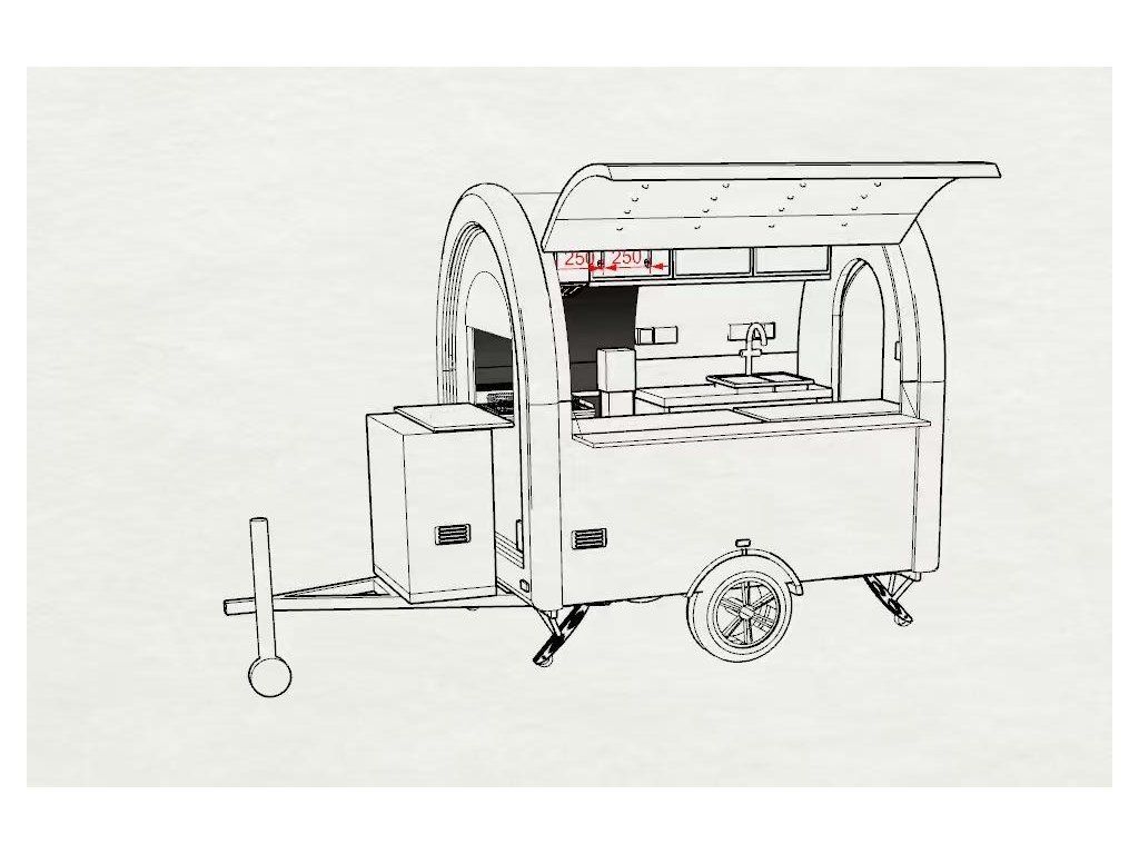 Nový designový pojízdný prodejní stánek menších rozměrů vhodný pro 2 osoby