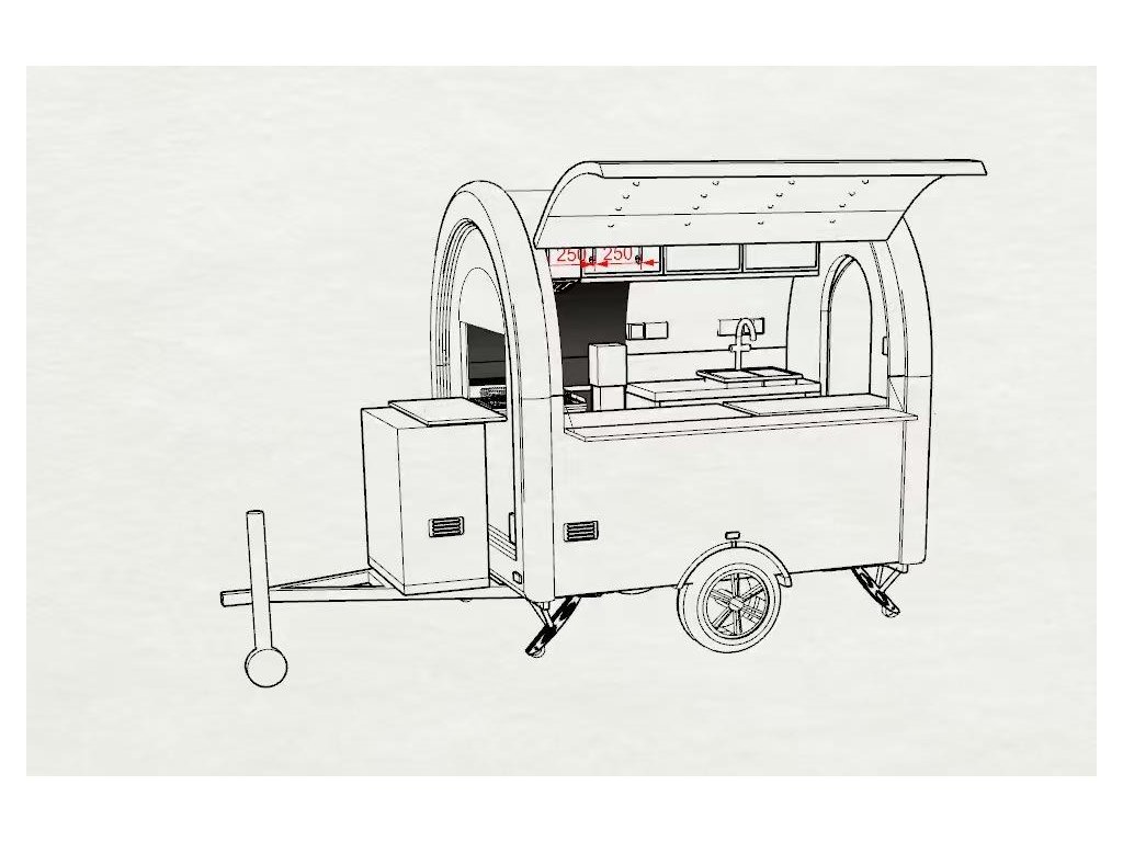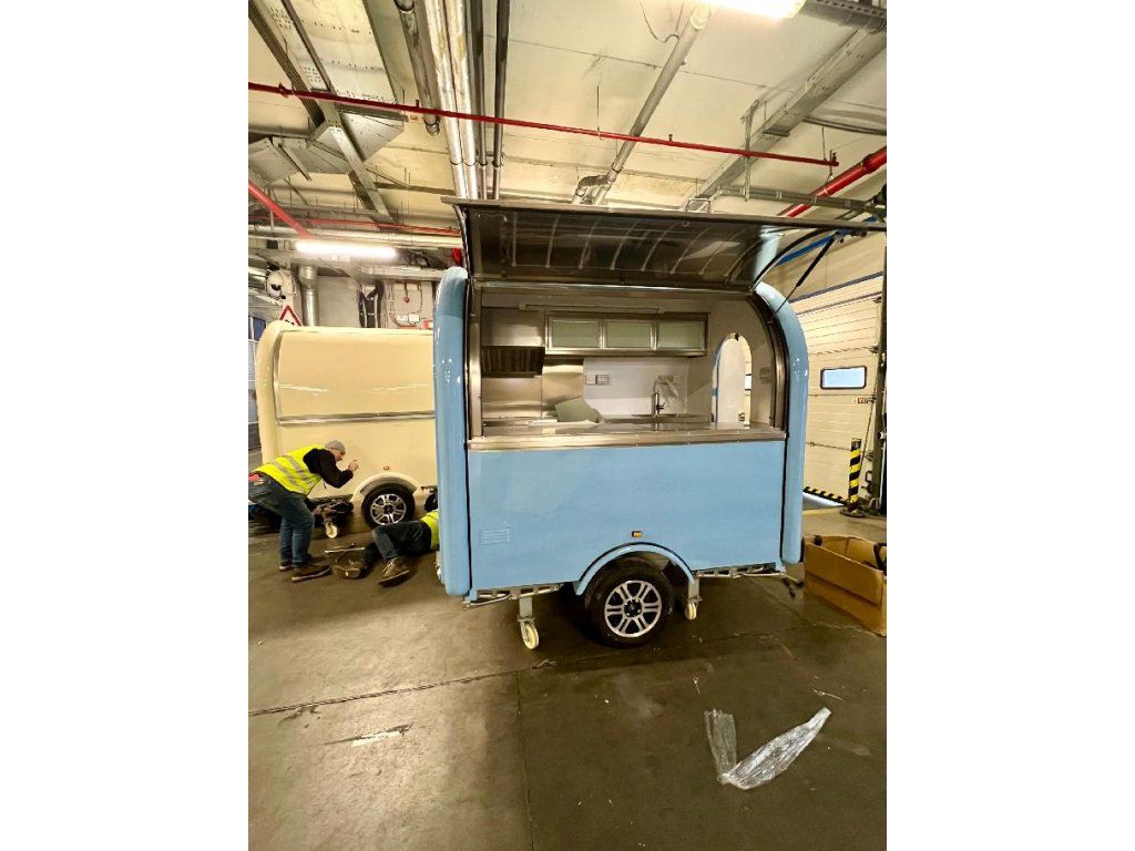 Nový designový pojízdný prodejní stánek menších rozměrů vhodný pro 2 osobyavšak s maximálně multifunkčním využitím včetně vnitřního vybavení. Cafe + sladké, lehké gastro s fritézou nebo grilem a pod ..
